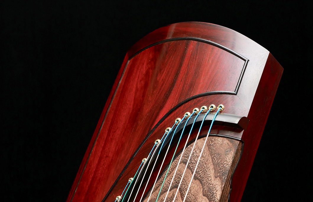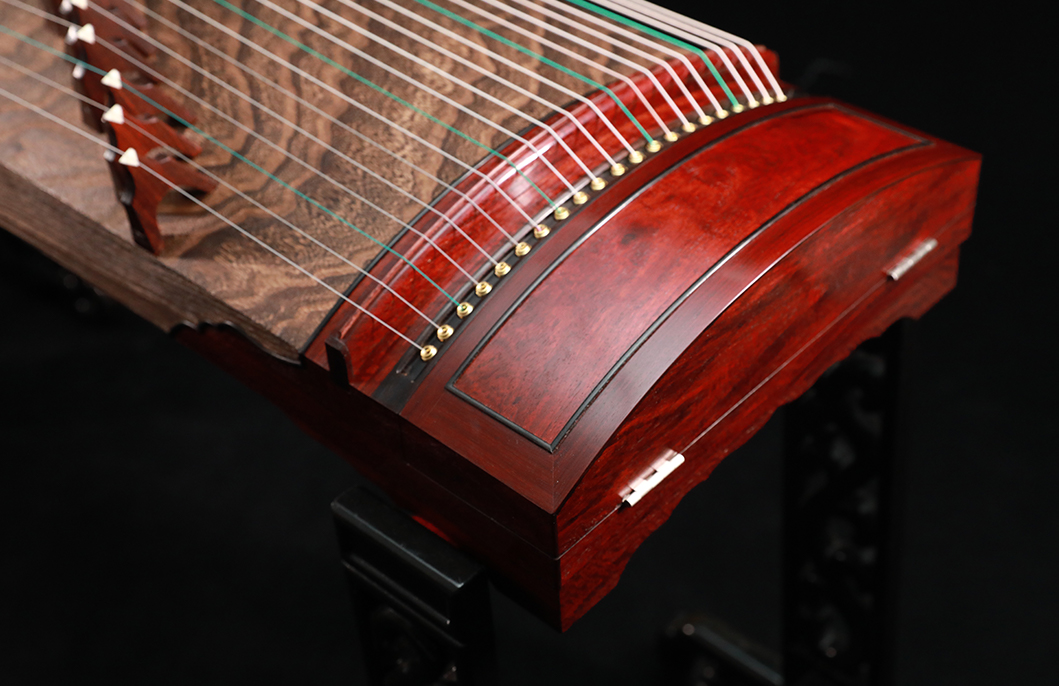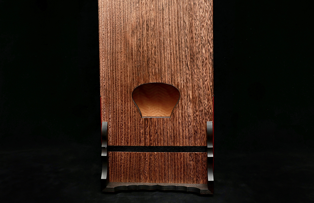 底板出音孔亦以紫檀木包邊,令音色更見圓潤厚實,不致失序散亂。