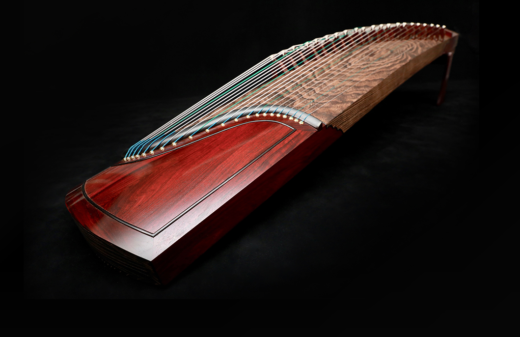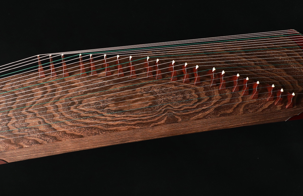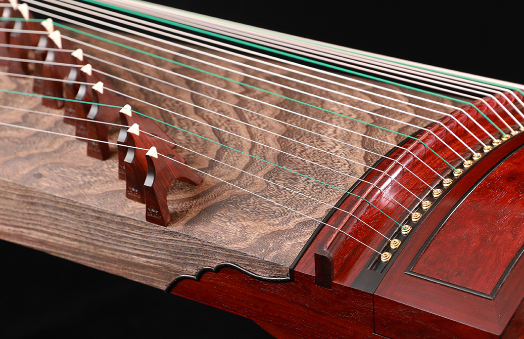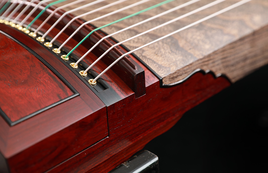 岳山選用整條的印度小葉紫檀,經工匠反覆調整弧度入榫裝嵌,將箏音的傳導昇華。