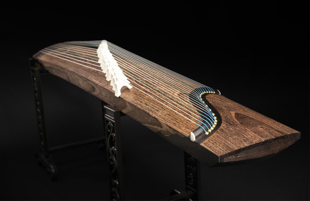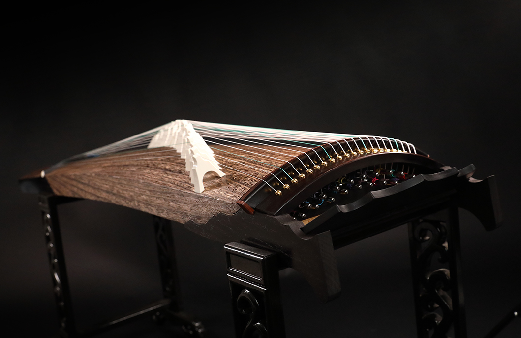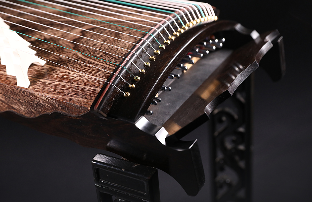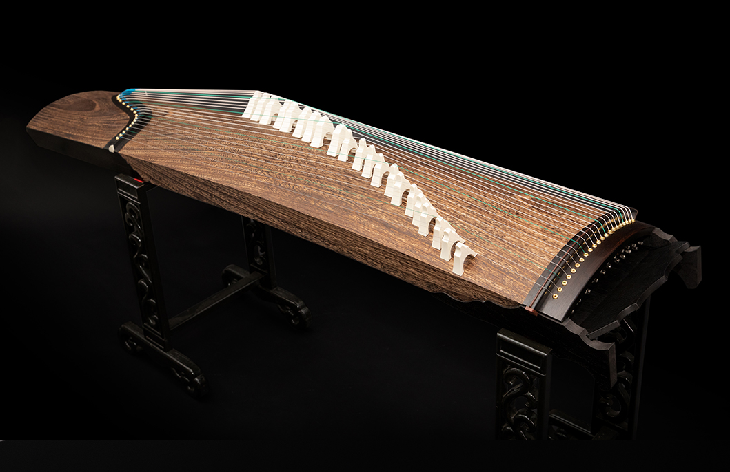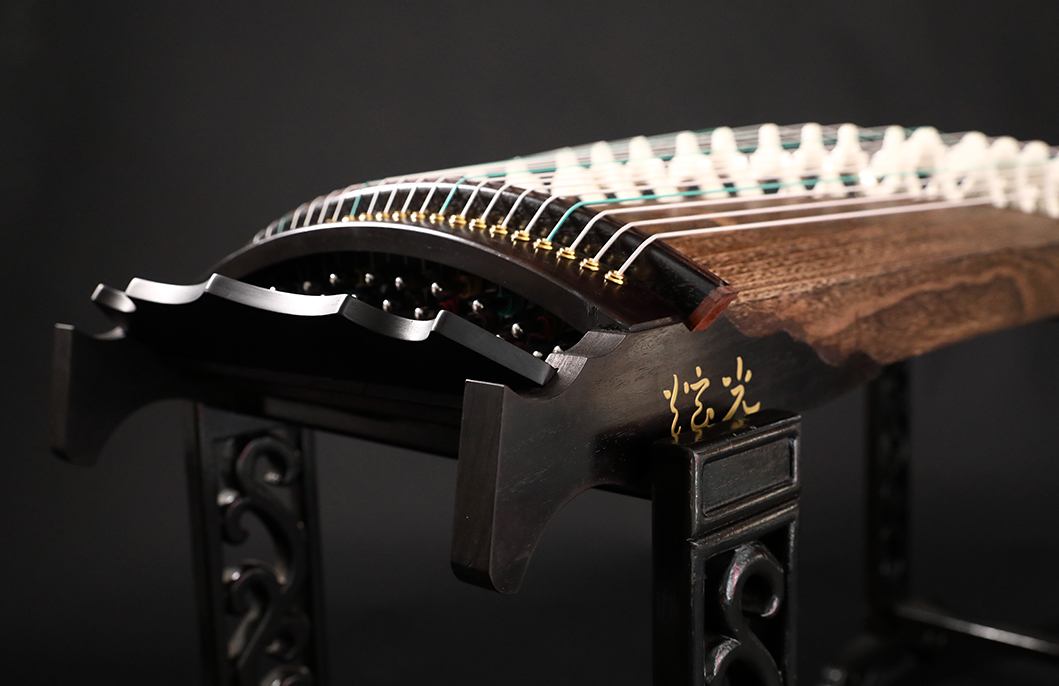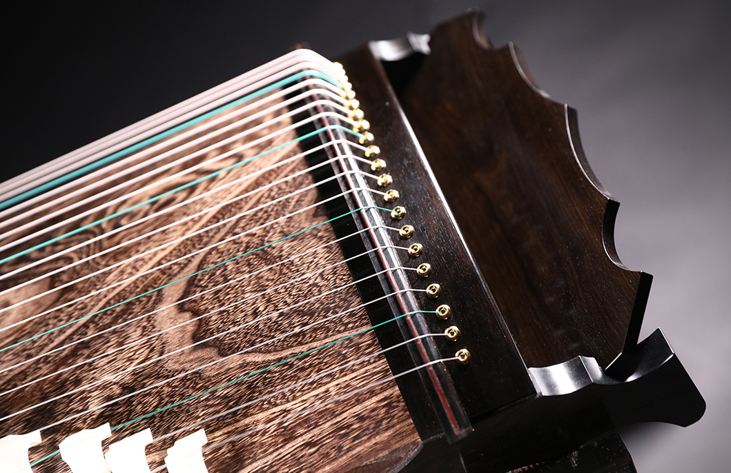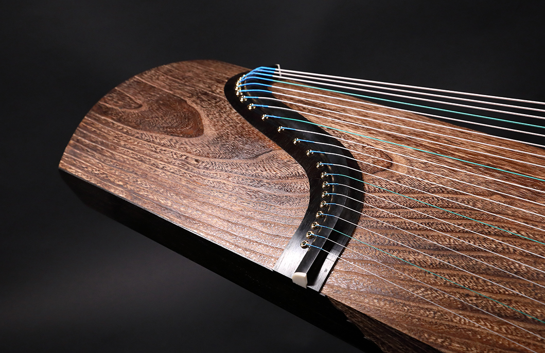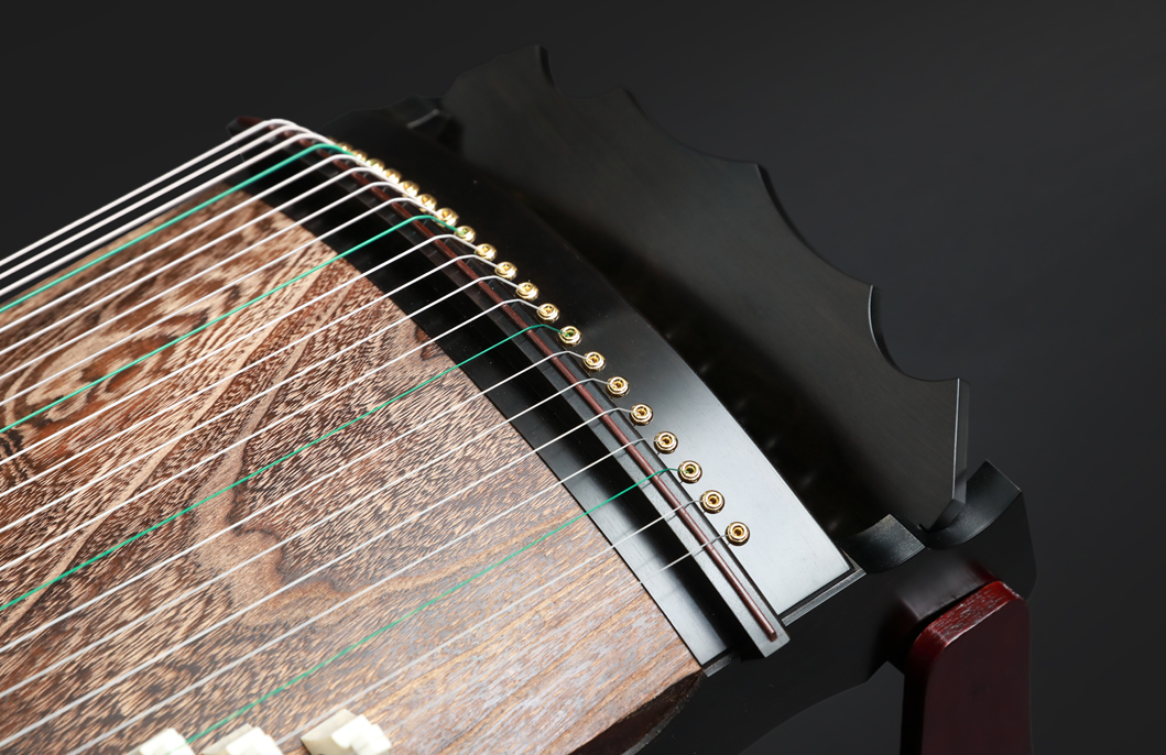 岳山選用整條的印度紫檀,經工匠反覆調整弧度入榫裝嵌,將箏音的傳導昇華。