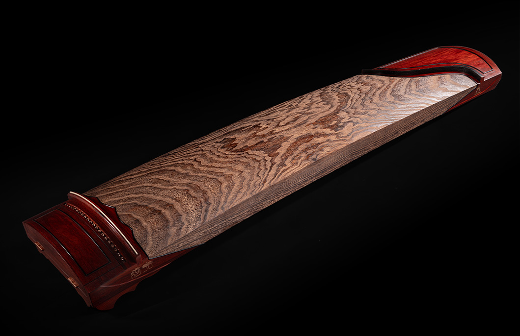 底板出音孔亦以紫檀木包邊,令音色更見圓潤厚實,不致失序散亂。