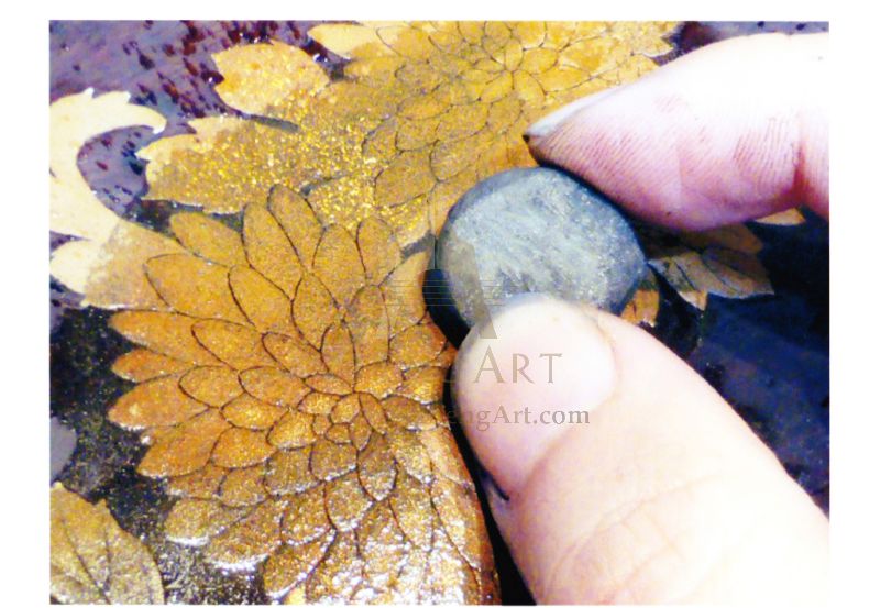 山口先生最後以人手打磨蒔繪,直到極薄如鏡面的反光效果。